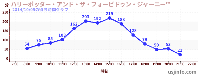 • ハリーポッター・アンド・ザ・フォービドゥン・ジャーニー™$B$N(B2014年10月05日の待ち時間