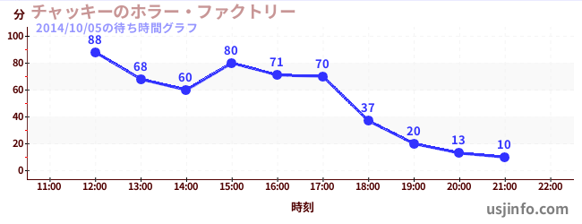 • チャッキーのホラー・ファクトリー$B$N(B2014年10月05日の待ち時間
