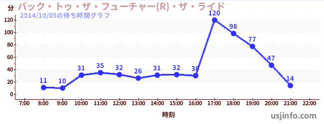 • バック・トゥ・ザ・フューチャー(R)・ザ・ライド$B$N(B2014年10月05日の待ち時間