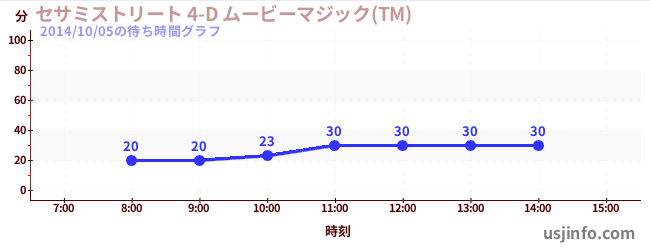 • セサミストリート 4-D ムービーマジック(TM)$B$N(B2014年10月05日の待ち時間