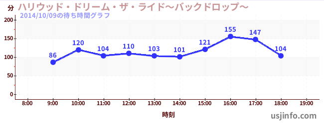 • ハリウッド・ドリーム・ザ・ライド〜バックドロップ〜$B$N(B2014年10月09日の待ち時間
