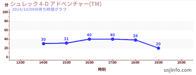 • シュレック 4-D アドベンチャー(TM)$B$N(B2014年10月09日の待ち時間