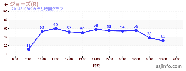 • ジョーズ(R)$B$N(B2014年10月09日の待ち時間