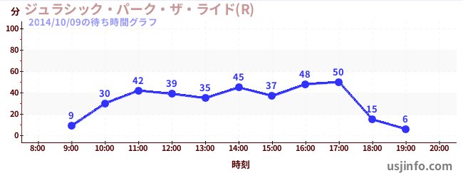 • ジュラシック・パーク・ザ・ライド(R)$B$N(B2014年10月09日の待ち時間