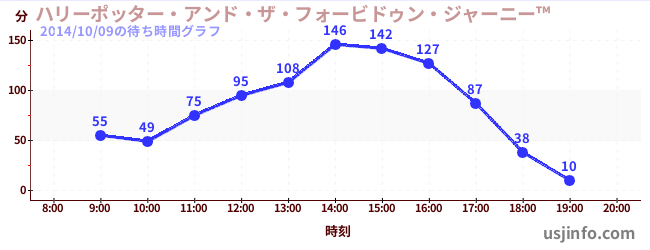 • ハリーポッター・アンド・ザ・フォービドゥン・ジャーニー™$B$N(B2014年10月09日の待ち時間