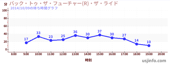 • バック・トゥ・ザ・フューチャー(R)・ザ・ライド$B$N(B2014年10月09日の待ち時間