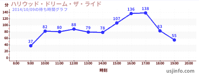 • ハリウッド・ドリーム・ザ・ライド$B$N(B2014年10月09日の待ち時間