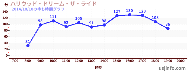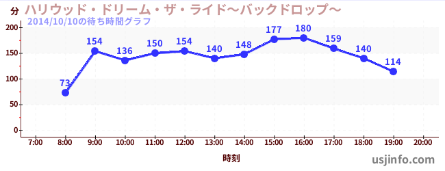 • ハリウッド・ドリーム・ザ・ライド〜バックドロップ〜$B$N(B2014年10月10日の待ち時間