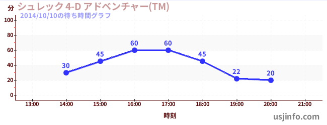 • シュレック 4-D アドベンチャー(TM)$B$N(B2014年10月10日の待ち時間