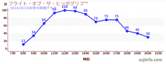 • フライト・オブ・ザ・ヒッポグリフ™$B$N(B2014年10月10日の待ち時間