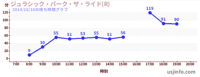 • ジュラシック・パーク・ザ・ライド(R)$B$N(B2014年10月10日の待ち時間