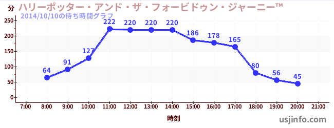 • ハリーポッター・アンド・ザ・フォービドゥン・ジャーニー™$B$N(B2014年10月10日の待ち時間