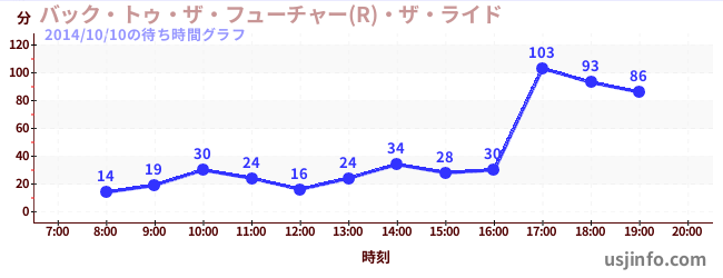• バック・トゥ・ザ・フューチャー(R)・ザ・ライド$B$N(B2014年10月10日の待ち時間