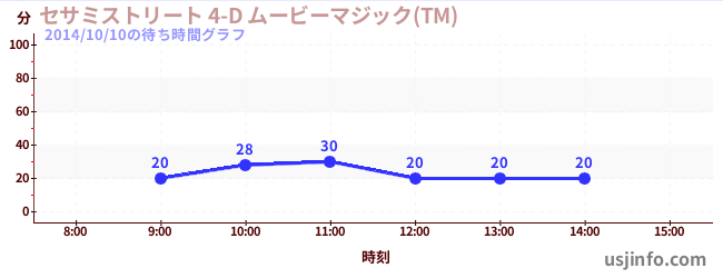 • セサミストリート 4-D ムービーマジック(TM)$B$N(B2014年10月10日の待ち時間