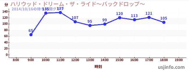 • ハリウッド・ドリーム・ザ・ライド〜バックドロップ〜$B$N(B2014年10月16日の待ち時間