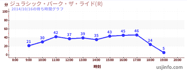 • ジュラシック・パーク・ザ・ライド(R)$B$N(B2014年10月16日の待ち時間