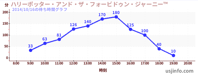 • ハリーポッター・アンド・ザ・フォービドゥン・ジャーニー™$B$N(B2014年10月16日の待ち時間