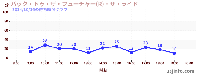 • バック・トゥ・ザ・フューチャー(R)・ザ・ライド$B$N(B2014年10月16日の待ち時間