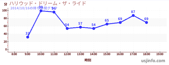 • ハリウッド・ドリーム・ザ・ライド$B$N(B2014年10月16日の待ち時間