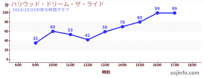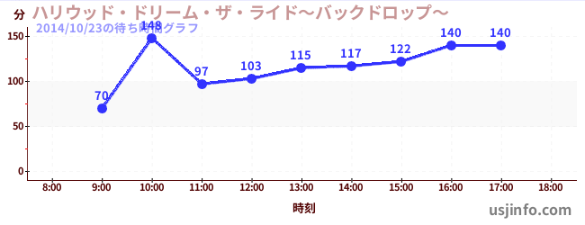 • ハリウッド・ドリーム・ザ・ライド〜バックドロップ〜$B$N(B2014年10月23日の待ち時間