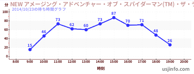 • NEW アメージング・アドベンチャー・オブ・スパイダーマン(TM)・ザ・ライド 4K3D$B$N(B2014年10月23日の待ち時間