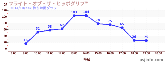 • フライト・オブ・ザ・ヒッポグリフ™$B$N(B2014年10月23日の待ち時間