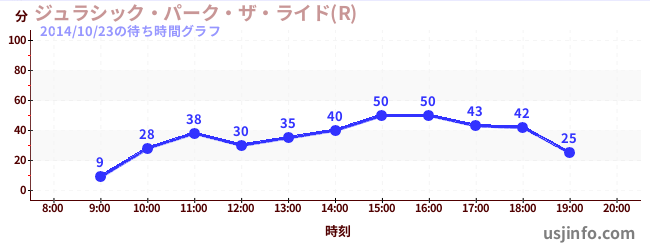 • ジュラシック・パーク・ザ・ライド(R)$B$N(B2014年10月23日の待ち時間