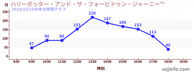 • ハリーポッター・アンド・ザ・フォービドゥン・ジャーニー™$B$N(B2014年10月23日の待ち時間