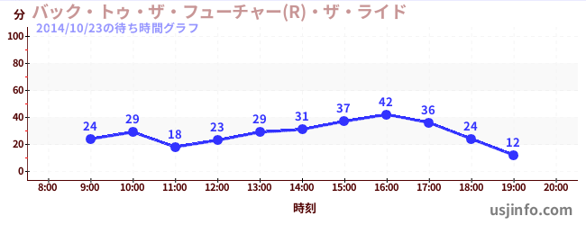 • バック・トゥ・ザ・フューチャー(R)・ザ・ライド$B$N(B2014年10月23日の待ち時間