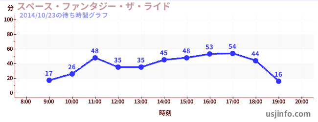 • スペース・ファンタジー・ザ・ライド$B$N(B2014年10月23日の待ち時間