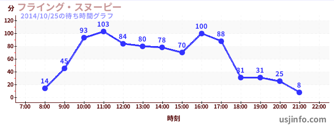 • フライング・スヌーピー$B$N(B2014年10月25日の待ち時間