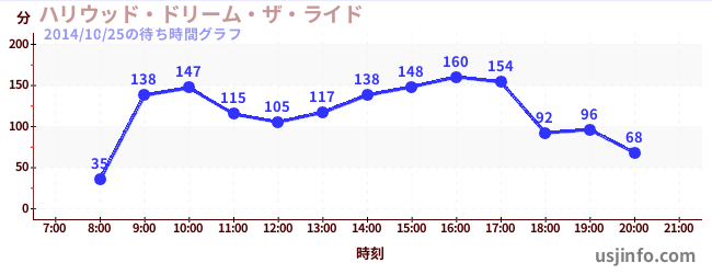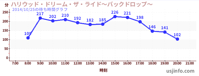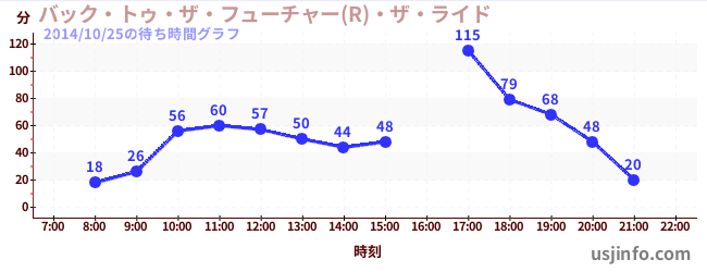 • ハリウッド・ドリーム・ザ・ライド〜バックドロップ〜$B$N(B2014年10月25日の待ち時間