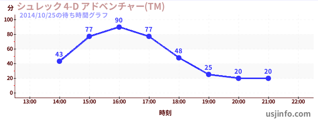 • シュレック 4-D アドベンチャー(TM)$B$N(B2014年10月25日の待ち時間