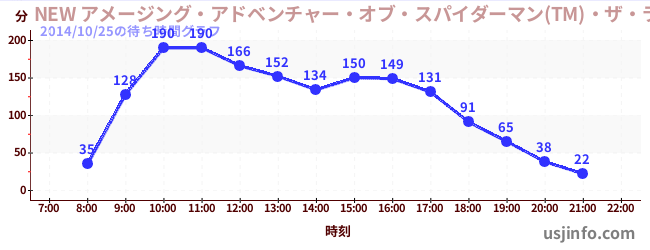 • NEW アメージング・アドベンチャー・オブ・スパイダーマン(TM)・ザ・ライド 4K3D$B$N(B2014年10月25日の待ち時間