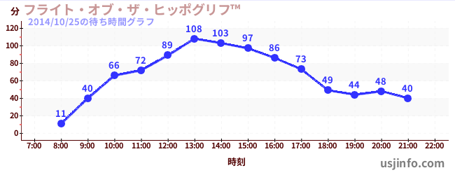 • フライト・オブ・ザ・ヒッポグリフ™$B$N(B2014年10月25日の待ち時間