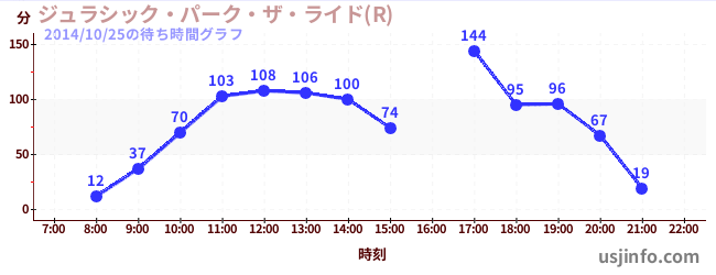 • ジュラシック・パーク・ザ・ライド(R)$B$N(B2014年10月25日の待ち時間