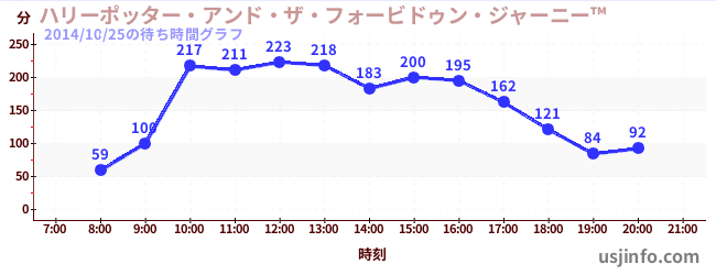 • ハリーポッター・アンド・ザ・フォービドゥン・ジャーニー™$B$N(B2014年10月25日の待ち時間