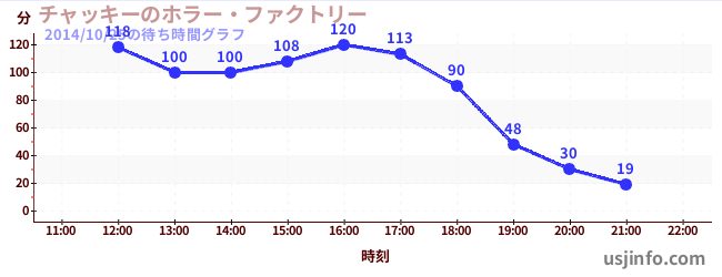 • チャッキーのホラー・ファクトリー$B$N(B2014年10月25日の待ち時間