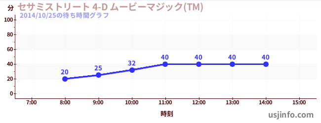 • セサミストリート 4-D ムービーマジック(TM)$B$N(B2014年10月25日の待ち時間