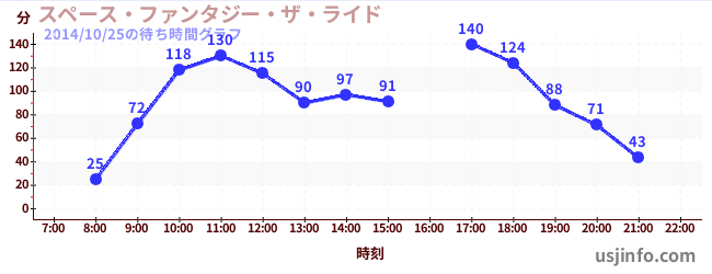 • スペース・ファンタジー・ザ・ライド$B$N(B2014年10月25日の待ち時間