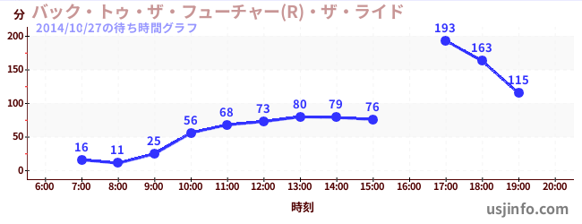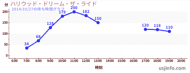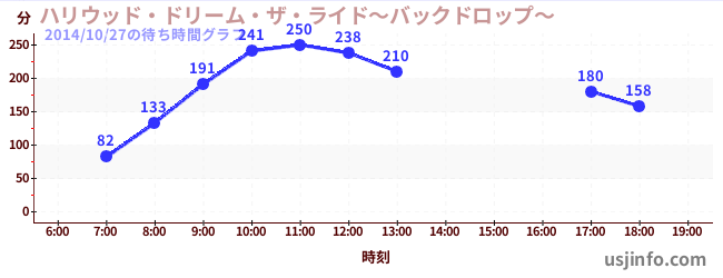 • ハリウッド・ドリーム・ザ・ライド〜バックドロップ〜$B$N(B2014年10月27日の待ち時間