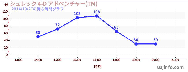 • シュレック 4-D アドベンチャー(TM)$B$N(B2014年10月27日の待ち時間