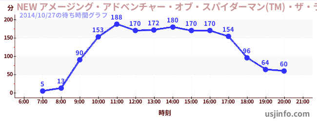 • NEW アメージング・アドベンチャー・オブ・スパイダーマン(TM)・ザ・ライド 4K3D$B$N(B2014年10月27日の待ち時間