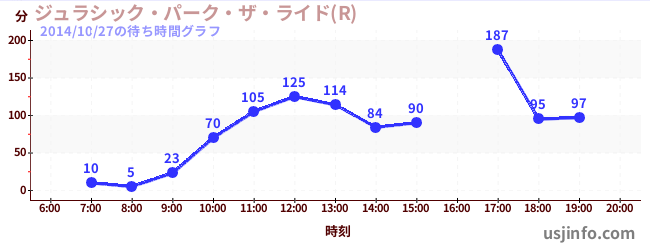 • ジュラシック・パーク・ザ・ライド(R)$B$N(B2014年10月27日の待ち時間