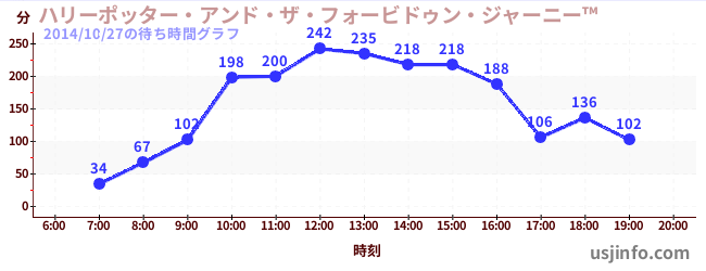 • ハリーポッター・アンド・ザ・フォービドゥン・ジャーニー™$B$N(B2014年10月27日の待ち時間