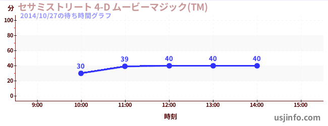 • セサミストリート 4-D ムービーマジック(TM)$B$N(B2014年10月27日の待ち時間