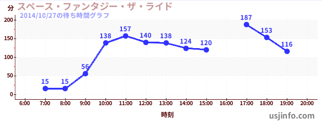 • スペース・ファンタジー・ザ・ライド$B$N(B2014年10月27日の待ち時間