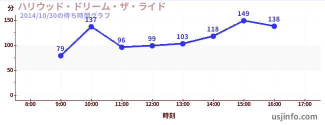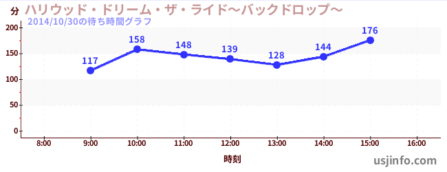 • ハリウッド・ドリーム・ザ・ライド〜バックドロップ〜$B$N(B2014年10月30日の待ち時間