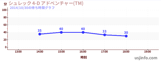 • シュレック 4-D アドベンチャー(TM)$B$N(B2014年10月30日の待ち時間