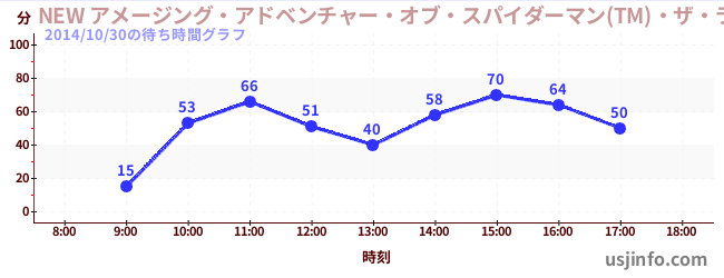 • NEW アメージング・アドベンチャー・オブ・スパイダーマン(TM)・ザ・ライド 4K3D$B$N(B2014年10月30日の待ち時間